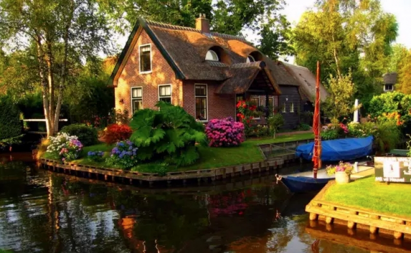 一有個小村莊,大可以花一整天在這裡享受靜謐、安詳,這村莊家家都有船,出入都用船來代步。