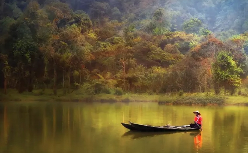 早晨的Situ Gunung湖,彷彿一幅水墨畫,美得讓人窒息。